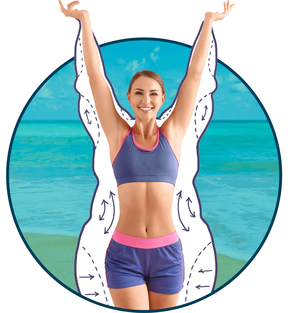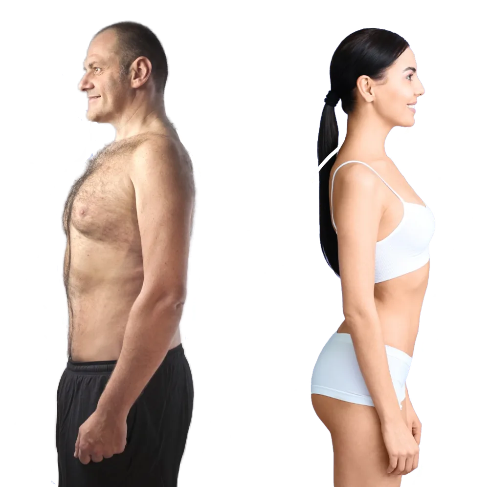 Before and after photos are taken from individuals who have completed a series of treatments. The number of treatments required varies depending on your current stage in your weight loss journey and your overall goals. Individual results may vary, as each person has a unique body type, starting point, and set of goals. For a clearer understanding of the potential results you may achieve, we recommend booking an appointment on the following page. During your appointment, we will discuss all necessary information to ensure your success with our body contouring lights!